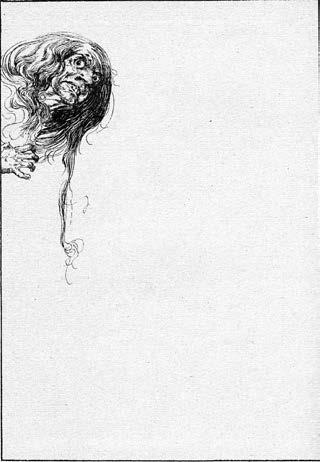 Появляется девушка верхом на крупном рыжем муле с раздутыми ноздрями и крутыми боками. На ней голубой конический головной убор по французской моде, в руке хлыстик с рубиновой рукояткой, но ее ногти похожи на львиные когти, а руки – как обезьяньи лапы. Волосы у нее черные, всклокоченные и грубые, словно щетина. Она откидывает вуаль – и что же мы видим? У нее здоровенный собачий нос, два торчащих кабаньих клыка, брови зачесаны вверх до самой ленты, поддерживающей волосы, а лицо покрыто шерстью. Вид у нее страшноватый, но она – вестница Грааля. Она приехала с Востока, из страны Зазаманк, а зовут ее Кундри.
