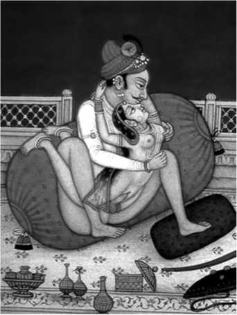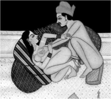 При «высоком» соитии женщина-«газель» пусть ляжет так, чтобы ее йони расширялась, а женщина-«слониха» при «низком» соединении пусть ляжет так, чтобы ее йони сужалась. При «равном» же соединении пусть женщина лежит в естественной позе. Сказанное о «газели» и «слонихе» касается и женщины-«кобылицы». При «низком» соединении, однако, пусть она принимает возбуждающие средства, дабы быстрее утолить свою страсть.