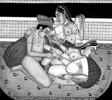 В области, где принято многомужество, многие юноши наслаждаются с одной женщиной, которая может быть супругой одного из них, либо чередуясь, либо одновременно. Так, один ее держит, другой наслаждается ею, третий берет ее в рот, четвертый держит ее таз; они меняются местами и получают различные наслаждения. Так же поступают и в тех случаях, когда несколько мужчин находятся в компании одной ганики. Подобным образом поступают и жены царского гарема, если в их покоях оказывается мужчина.