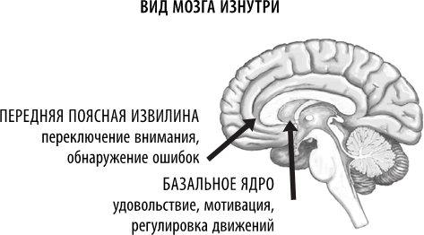 Наряду с долговременным потенцированием и киндлингом важно знать о двух областях мозга, непосредственно связанных с психической гибкостью, а также с формированием привычек. Это передняя поясная извилина, которую я считаю главным переключателем передач мозга, и базальное ядро, где формируются и закрепляются привычки.