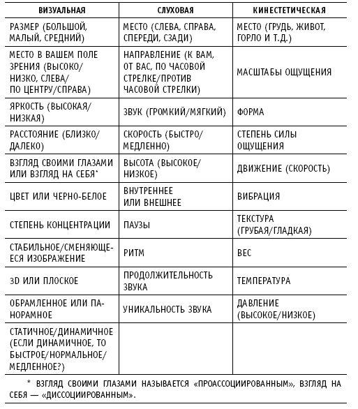 Хотя существуют отдельные субмодальности, которые для большинства людей обычно оказываются значимыми, важно помнить, что: