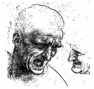 Рот вместе с глазами играет большую роль и при чувстве боли, страдания, и в выражении предельного гнева, ярости, которые с большой силой переданы в этюде голов сражающихся воинов Леонардо да Винчи (рис. 133).