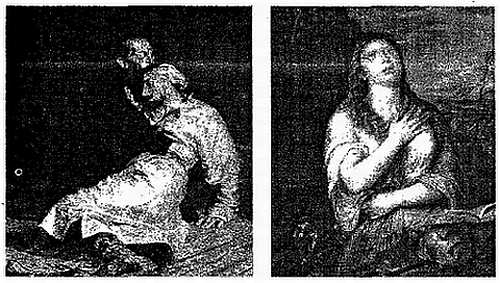 Рис. 136. С картин И. Е. Репина «Иван Грозный убивает сына» и Тициана «Кающаяся Мария Магдалина»