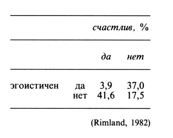 Многие эксперименты показали, что счастливые люди отличаются такими качествами, как щедрость и готовность прийти на помощь другим. Эти же качества характерны и для людей, у которых хорошее настроение было вызвано искусственной стимуляцией положительных переживаний (получение небольших подарков, припоминание приятных событий и т. п.). Интересно, что в солнечные дни люди охотнее идут на участие в социологических опросах и дают больше чаевых официантам (Cunningham, 1979). Установлено, что испытуемые, находящиеся в хорошем настроении, готовы оказывать экспериментаторам самую разнообразную помощь (Batson et al., 1979). Эти выводы находят серьезные практические подтверждения. В одном из экспериментов 47% испытуемых, хорошее настроение у которых было вызвано воспоминаниями о счастливых эпизодах их жизни, предложили сдать свою кровь; из тех же, кто находился в контрольной группе, на это согласилось только 17% (O'Malley and Andrews, 1983). В результате анализа настроений более устойчивого характера, где в качестве испытуемых выступали 1988 человек, были выведены следующие зависимости между проявлением эгоизма и эмоциональным состоянием (счастлив - несчастлив):