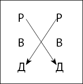 Рис. 11 отображает большую силу этих конфликтогенов четырьмя характерными моментами: двумя пристройками сверху, перекрестьем стрелок и максимально возможным рассогласованием состояний – в общей сложности на четыре ступени (по две у инициатора и у адресата).