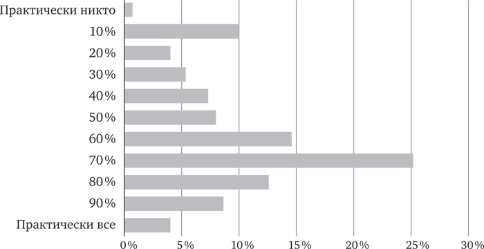 И это не пережиток времени, когда взгляды сексолога Кинзи многими воспринимались в штыки. Я попросил выборочную группу обоих полов назвать процент американских мужчин, которым сделали обрезание. Точного знания подобной статистики вряд ли стоит от кого-либо ждать, но ведь нельзя не предположить, что молодые люди видели или догадались, что большинству американских мальчиков делают обрезание (79 %, по данным одного исследования)[207].