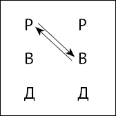 Начальник осуждает подчиненного, то есть находится в состоянии Родитель. При этом он осуществляет пристройку сверху (руководит), обращаясь к рассудку подчиненного. То есть имеет место трансакция Р ? В. Назовем ее «Профессор» и изобразим на рис. 4 стрелкой сверху вниз.