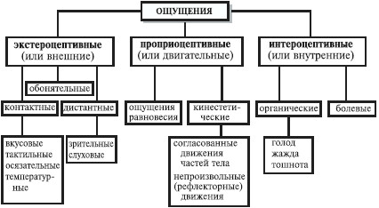 Английским физиологом Ч. Шеррингтоном была предложена классификация ощущений, представленная на рис. 8.