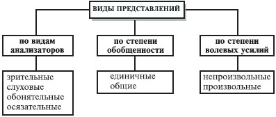 Так как в основе представлений лежит прошлый перцептивный опыт, то основная классификация представлений строится на базе классификаций видов ощущений и восприятий (рис. 10).