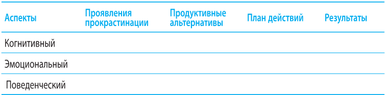 Что вы можете сделать, если прокрастинируете, когда вам нужно бороться с тревогой по поводу возможной неудачи? В следующей таблице рассматриваются когнитивные, эмоциональные и поведенческие аспекты прокрастинации, а также продуктивные альтернативы, планы действий и возможные результаты принятия мер.