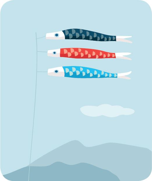 В этот день богов просят о крепком здоровье для мальчиков. Правда, в наши дни толкование праздника стало шире, его теперь понимают как «праздник детей» (кодомо-но хи). Крыши домов украшают коинобори – разноцветными развевающимися на ветру флагами в форме карпов. Эти рыбы символизируют силу и отвагу, потому что могут подниматься по реке против течения. В доме на всеобщее обозрение выставляются копии доспехов о-ёрой или шлем самурая кабуто. Согласно обычаю, для укрепления иммунитета принимают ванну с болотным аиром. В этот день едят касива-моти – завернутые в дубовый лист рисовые пирожные с начинкой из красной сладкой фасоли, или тимаки – соленый или сладкий рис, приготовленный на пару и завернутый в лист бамбука.