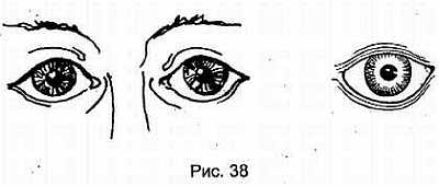 Большие глаза обычно указывают на чувствительность души и впечатлительность, нередко — на мужество и стремление к лидерству. Редко, являются признаком мягкости и спокойствия (рис. 38).