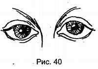 Глаза малого размера чаще принадлежат замкнутым, самодовольным, иногда упрямым людям. Нередко люди с такими глазами отличаются удивительным постоянством чувств и действий (рис. 39).