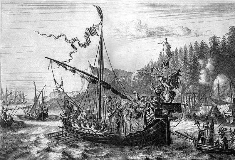 Стенька Разин бросает в Волгу персидскую княжну. Гравюра XIX в.