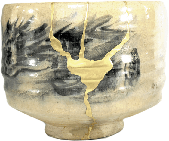 Случайность, которая произошла в его жизни, придала определенную форму его трещинам. После того как этот предмет был преображен в технике кинцуги, золотые швы сделали его не только дорогим и оригинальным, но еще и неповторимым.