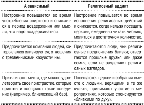 Общие черты А-зависимых и религиозных аддиктов (Ryan, VanVonderen):