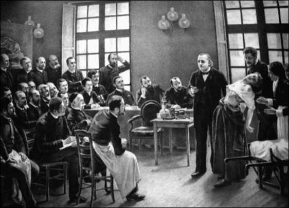Невролог Жан Мартин Шарко проводит сеанс гипноза с больной истерией. Париж, картина 1887 г.