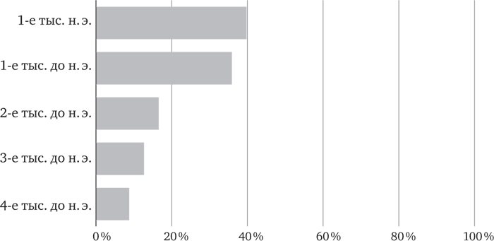 Респондентов, которым достался период с 1000 г. н. э. и назад в прошлое, я просил называть события, случившиеся в том или ином тысячелетии. Я не стал полагаться на то, что несколько сбивающие с толку формулировки вроде «первое тысячелетие нашей эры» будут понятны всем. Поэтому в исследовании спрашивалось о «важном историческом событии, произошедшем с 1 по 999 г. н. э.».