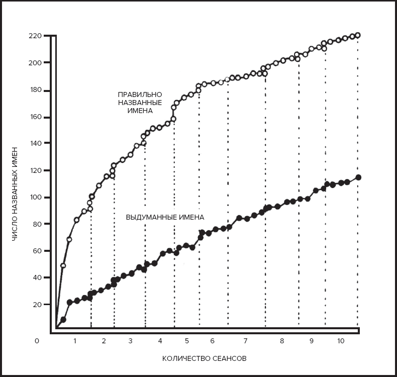 Предположим, вас попросили вспомнить людей, с которыми вы учились в старших классах. В ходе одного эксперимента исследователи проверяли, как участники помнят события разной давности – от нескольких лет до двадцати. Участников просили назвать имена их одноклассников – они работали над этим заданием днями, а в некоторых случаях и месяцами. Чем дольше они пытались вспомнить, тем больше имен называли. Представленный на следующей странице график показывает прогресс одной из участниц.