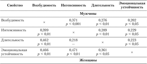 Таблица 8.3. Корреляции между выраженностью различных свойств эмоциональности (по самооценкам испытуемых).