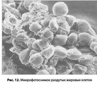 При диабете второго типа (инсулинонезависимый диабет) проблема не в том, что в организме слишком мало инсулина, а в том, что клетки не реагируют на инсулин. Проблема здесь возникает из-за того, что с возрастом люди часто прибавляют в весе. (Но если вес с возрастом не увеличивается, риск этого заболевания снижается. Мы наблюдаем это в незападных культурах. Следовательно, это заболевание — не нормальная особенность старения; скорее это следствие гиподинамии и лишнего веса, которые просто больше распространены в некоторых культурах.) При достаточном количестве накопленного жира жировые клетки больше не могут его вмещать; количество жировых клеток у взрослого человека не меняется, и, если мы прибавляем в весе, жировые клетки раздуваются (рис. 12). Еще один плотный ужин приводит к взрыву инсулина, пытающегося заставить жировые клетки принять новый жир, но жировые клетки отказываются, они и так переполнены. В гостинице нет свободных мест. Жировые клетки становятся менее восприимчивыми к инсулину, который хочет заставить их накопить еще больше жира, и эти клетки принимают меньше глюкозы[21]. Переполненные жировые клетки даже начинают вырабатывать гормоны, побуждающие другие жировые клетки и мышцы меньше реагировать на инсулин.