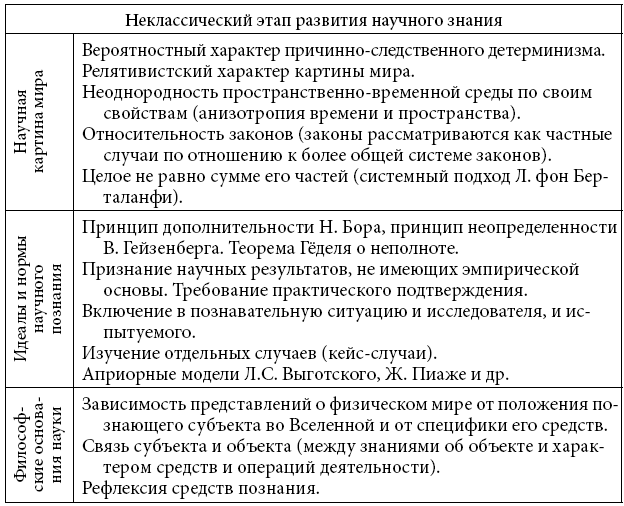 Основные закономерности неклассической науки представлены в таблице 3.2.