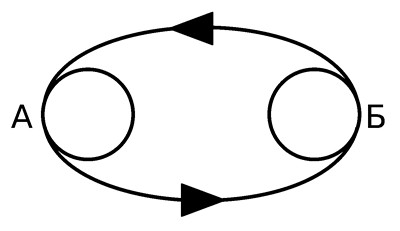 Рис. 5.7. Амбивалентная петля. Представления обмениваются квантами либидо. Схема справедлива для любой разности потенциалов между представлениями.