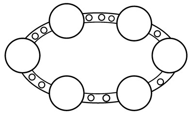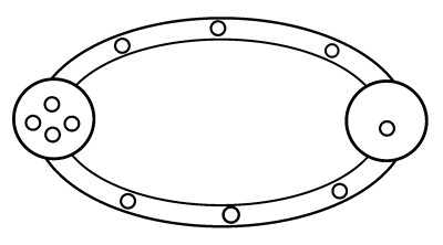 Рис. 5.10 в. Присоединим несколько нейтральных представлений к амбивалентному конфликту. Либидо «растечется» по потокам. Все 11 квантов теперь постоянно в пути, все представления свободны от нагрузки. В каждой «трубке» по-прежнему не более 3 квантов либидо.