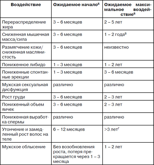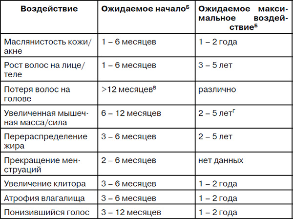 Таблица 1А. Воздействие и ожидаемый период действия маскулинизирующих гормоновА
