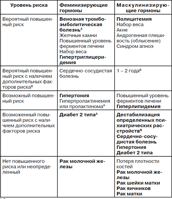 Таблица 2. Риски, связанные с гормональной терапией. Отмеченные жирным пункты клинически значимы