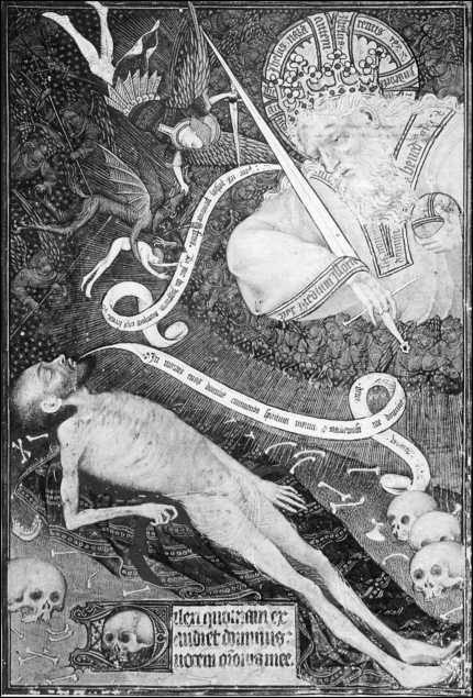 Умирающий перед Богом, ангелами и чертями. Из манускрипта ХV в.