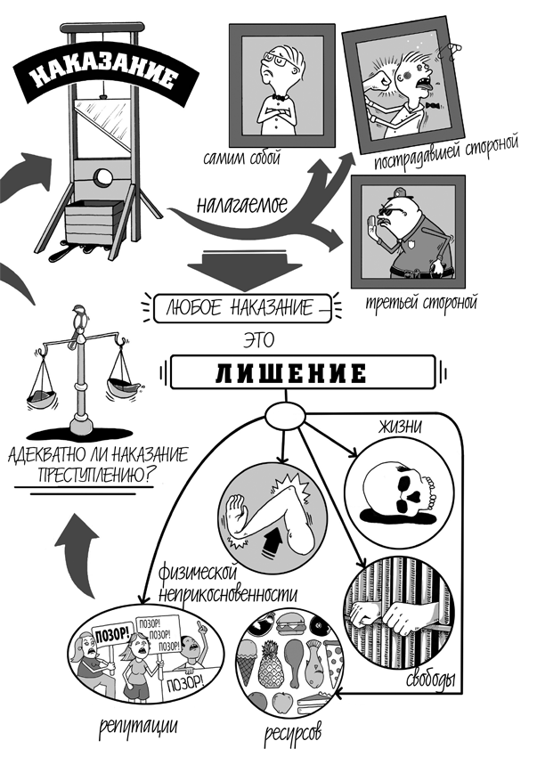 Чувство стыда – его следует отличать от чувства, когда тебя мучает совесть, – является наказанием и как любое наказание используется в качестве средства принуждения к соблюдению общественных норм. Человечество знает наказания, предполагающие лишение преступника жизни, свободы, физической неприкосновенности, ресурсов или репутации (либо те или иные их сочетания), и, когда человека стыдят, мишенью становится именно репутация. Лишение провинившегося чего бы то ни было может носить активный характер – таковы, например, лишение жизни через смертную казнь, тюремное заключение, пытки, штрафные санкции или пикетирование – либо принимать пассивную форму отторжения, поражения в правах, как в случае остракизма или бойкота. (В ходе исследования, проведенного в США, две трети из 2000 респондентов признались, что бойкотировали кого-то из ближнего окружения, а треть сами становились жертвами бойкота.)