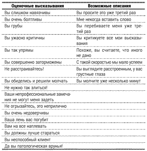 1. Снизьте эмоциональный накал, незаметно сменив тему на менее напряженную и овладев ходом беседы, увеличьте долю своих высказываний, замедлите темп речи. Делайте более частые и продолжительные паузы, чтобы клиент мог восстановить свой обычный самоконтроль.