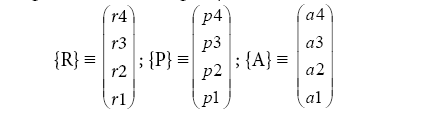 В свою очередь, каждый элемент матриц R; P; A, отражающий сформированность уровней 1-го порядка, может представлять собой матрицы-строки (размерности 1?n), которые будут характеризовать соответственно уровни 2-го и последующих порядков. Например, для уровней 1-го порядка каждого из компонентов это будет выглядеть так: