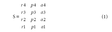 Порядок элементов матрицы (обратный по сравнению с общепринятым в матричном исчислении) отражает онтогенетическую последовательность формирования иерархически организованных уровней базовой структурной организации.