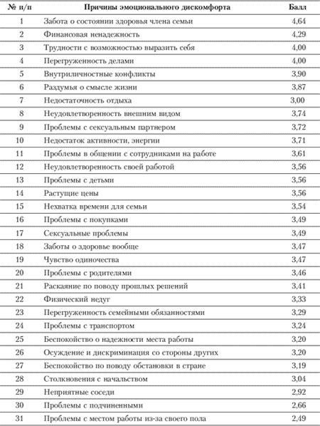 Таблица 7.1. Значимость причин эмоционального дискомфорта.