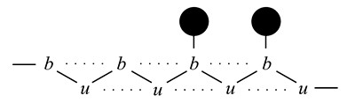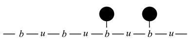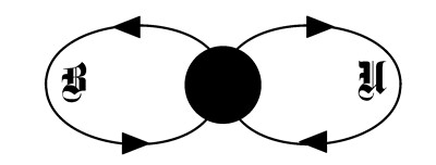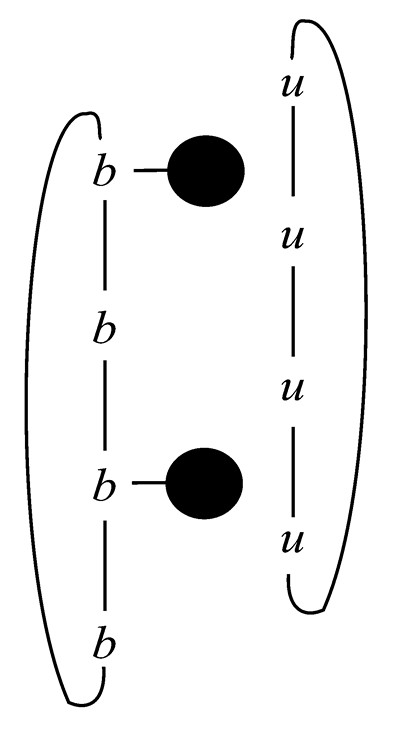 Рис. 6.14. Цепочка u-b-u распадается на две, каждая целиком лежит в своей структуре. Цепочки замыкаются, образуя зеркальную пару вихрей. Если в прошлом от цепочки успел отпочковаться застой, то он попадает между двух вихрей. В этом случае вихри называют жерновами комплекса Хроноса.