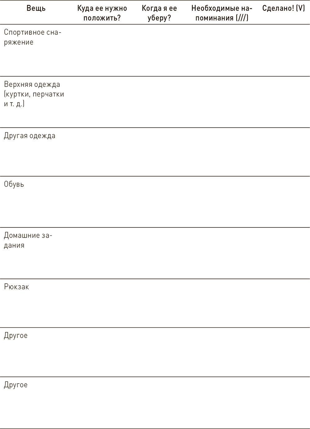 3. Решите, когда вещь будет положена на место (например, когда ребенок придет домой из школы; после того как сделает домашнюю работу; сразу же после использования вещи и т. д.).