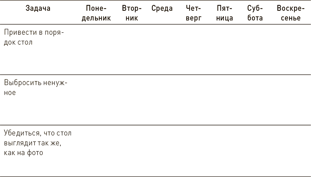 3. Превратите получившийся список в проверочный лист (в табл. 10.1–10.2 даны образцы; вы можете использовать их в готовом виде или модифицировать, вписав свои задачи).