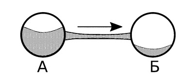 Рис. 5.6. Простейшая схема влечения. Запас либидозного потенциала символически изображен жидкостью, наполняющей сосуды-представления. Либидо течет от Алисы (представление А) к Бэзилу (представление Б), как в сообщающихся сосудах.