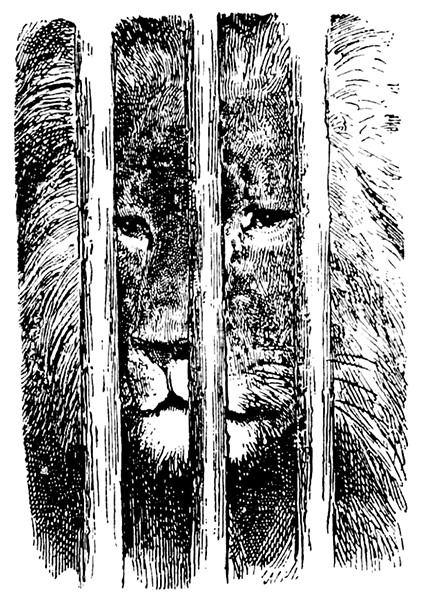 Рис. 3 Животное-Самость за решеткой. Поскольку наш опыт общения с Самостью часто воспринимает нечеловеческие и ужасные образы, Самость в сновидениях часто предстает в виде сильного животного, подобного льву или медведю. Поскольку мы испытываем страх, то должны стараться сдерживать эту мощную инстинктивную сторону самих себя c помощью решетки, скрытой от сознания. Однако в конце концов она всегда вырывается. (Ил. Г. Доре к «Дон-Кихоту Ламанчскому»).
