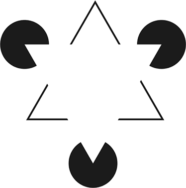Уверен, что вы, как и я, вполне отчетливо видите на этой картинке треугольник, которого на самом деле нет. Положение других объектов создает у нас иллюзию существования этого — отсутствующего в действительности — треугольника.