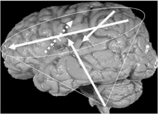 Рис. 4.2. Упрощенная реконструкция векторного «перераспределения» организации психических функциональных систем в «пространстве» головного мозга