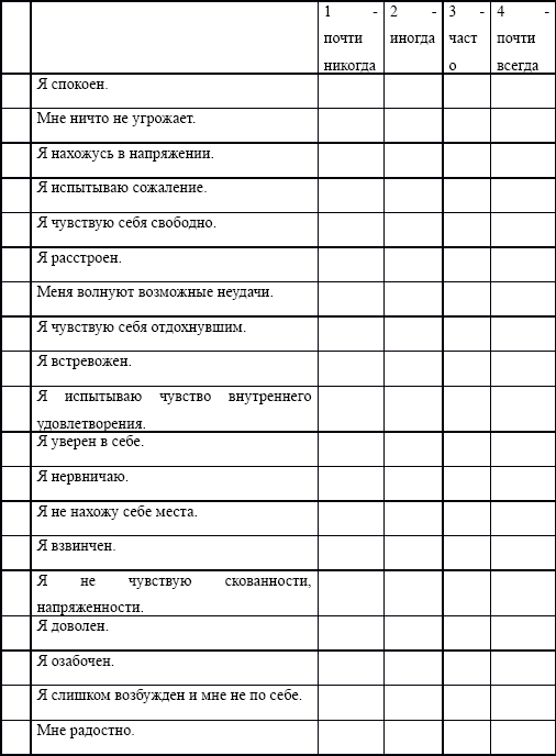 Приложение №2: Шкала самооценки Спилбергера-Ханина