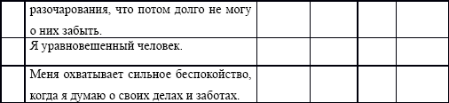 Реактивная тревожность (PT) = A-B+35, где, А — сумма зачеркнутых цифр на бланке по пунктам шкалы 3, 4, б, 7, 9, 12, 13, 14, 17, 18; В — сумма остальных зачеркнутых цифр по пунктам 1, 2, 5, 8, 10, 11, 15, 1б, 19, 20.