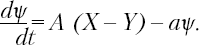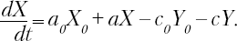Рашевский предполагает, что количество активных каждого типа постоянно, и обозначает его X0 и Y0. Количество пассивных, для которых характерно поведение того или иного типа, меняется в зависимости от того, какое поведение уже преобладает в выборке. Точнее, скорость изменения со временем количества пассивных, чье поведение соответствует типу X, dX/dt, прямо пропорциональна имеющемуся количеству X и обратно пропорционально имеющемуся количеству Y:
