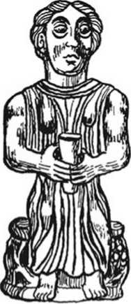 В 1837 году в Петроасе, в Румынии, была обнаружена древняя ритуальная чаша. Вероятно, она использовалась во время отправления одного из мистических культов, распространенных в мире эллинов до Рождества Христова. Этот артефакт имеет особое значение для обсуждаемой темы. Во-первых, чашу нашли именно там, где была распространена манихейская ересь (сделавшая попытку синтезировать христианство из мистических культов), которая, в конце концов, появилась в Европе в Средние века; время ее расцвета приходится на период создания романов о Тристане и Изольде и о Граале. Во-вторых, женская фигура в центре этой чаши (см. ил. 58), похоже, держит в руках нечто напоминающее Святой Грааль. В-третьих, вся композиция напоминает алебастровую чашу, изготовленную примерно в то же время: шестнадцать фигур расположены по кругу, в центре мы видим богиню бронзового века, а не ее змееподобного супруга.