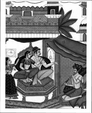 Встав утром и исполнив утренние ритуалы, почистив зубы, нанеся на тело ароматные притирания, надев на себя украшения, промокнув веки и кожу под глазами, накрасив губы алактакой и оглядев себя в зеркале, а затем взяв в рот несколько листьев бетеля и других трав для приятного дыхания, пусть домохозяин принимается за обычные дела. Омовение ему надлежит совершать каждый день, натираться маслом – через день, употреблять мылящие принадлежности – раз в три дня, брить голову (включая бороду) – раз в четыре дня, а остальные части тела – раз в пять или же десять дней. Все это нужно проделывать тщательно, не торопясь. Следует также всегда устранять пот из подмышечных впадин. Пищу надлежит принимать до полудня и после полудня. А согласно Чараяне – вечером. После утренней трапезы – время приятных занятий, как-то: обучения разговору попугаев и других птиц, петушиных, перепелиных и бараньих боев, времяпрепровождения с питхамардой, витой и видушакой[5] и время полуденного сна. Время после полудня, надев одежды и украшения, домохозяин проводит в беседах с друзьями. Вечерние часы он посвящает пению, после чего, изящно одевшись и окурив себя ароматами, он вместе с друзьями поджидает у себя в покоях прихода возлюбленной, с которой он заранее условился, либо посылает за ней служанку, либо идет к ней сам. Вместе с друзьями он встречает ее ласковыми словами и занимает приятной беседой. На этом завершаются его дневные заботы.