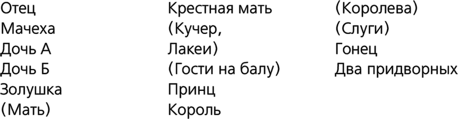 Рассмотрим теперь сценарии всех участвующих в действии персонажей. Требуется немного времени, чтобы понять, как много сценариев раскрывается в этой простой истории.
