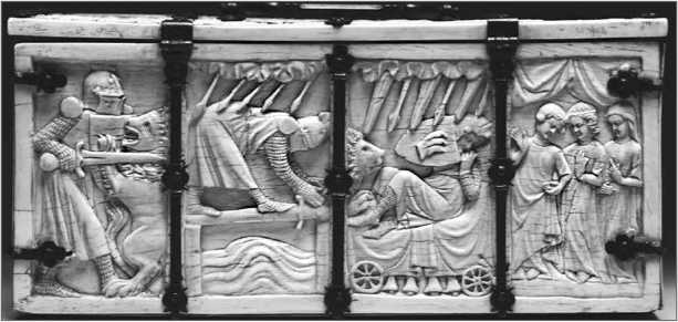 Ил. 48. Испытания Ланцелота (слоновая кость, Франция, 1330–1350 годы)